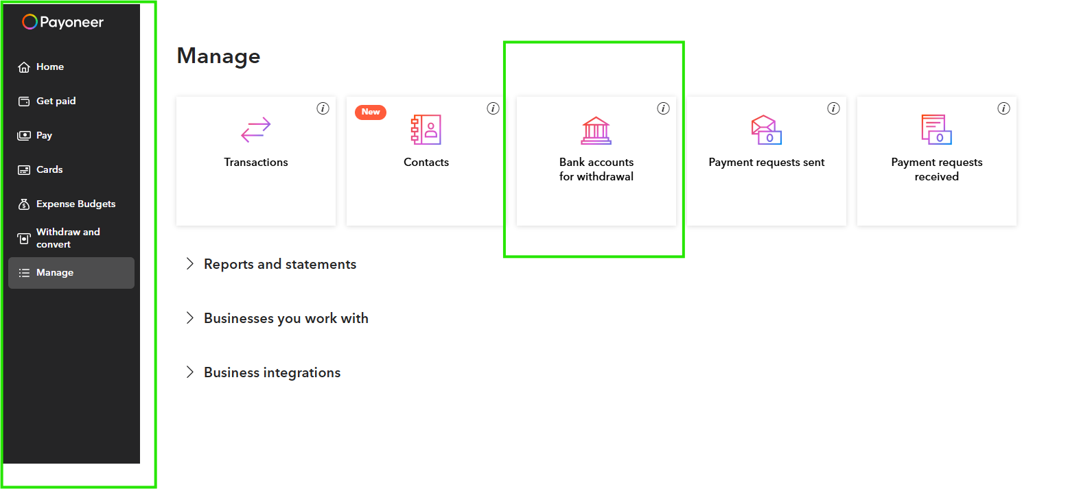 - Connectez-vous à votre compte Payoneer